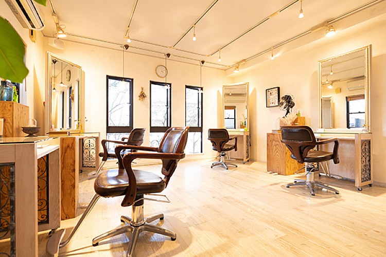流鉄流山線「流山駅」徒歩5分のヘアサロン「Nicol(ニコル)」は、白い壁と木の温もりを感じさせる店内にアンティーク調をプラスしたおしゃれな空間です。